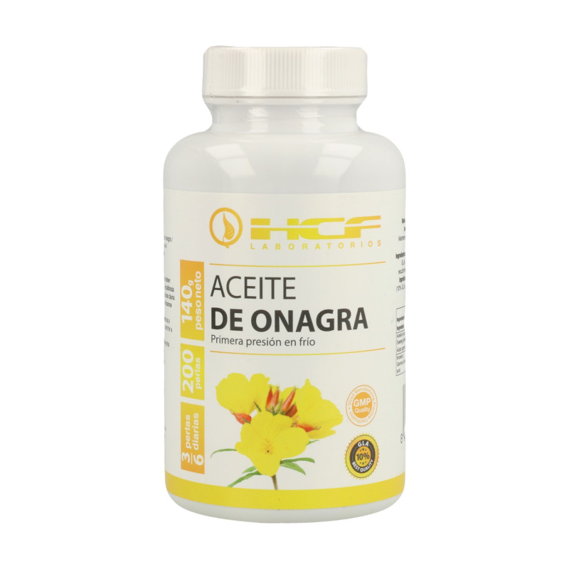 Aceite de Onagra de HCF es un complemento alimenticio a base de onagra recomendado para reducir los niveles del colesterol, mejora la respuesta del sistema inmune, alivia los síntimas del síndrome premenstrual y menopausia. Reduce hipertensión arterial.